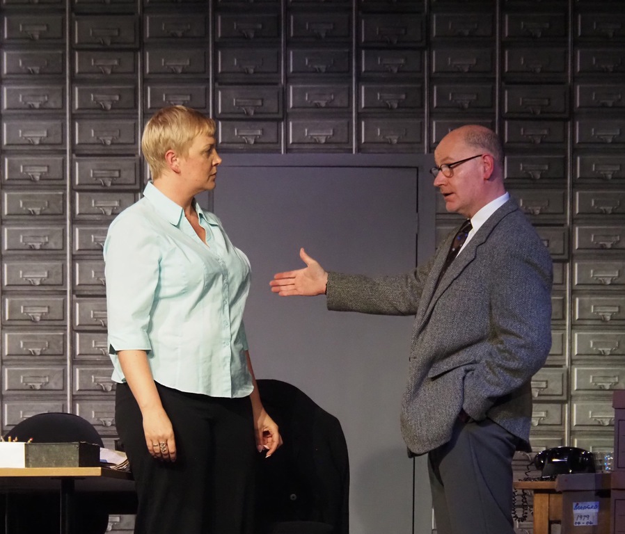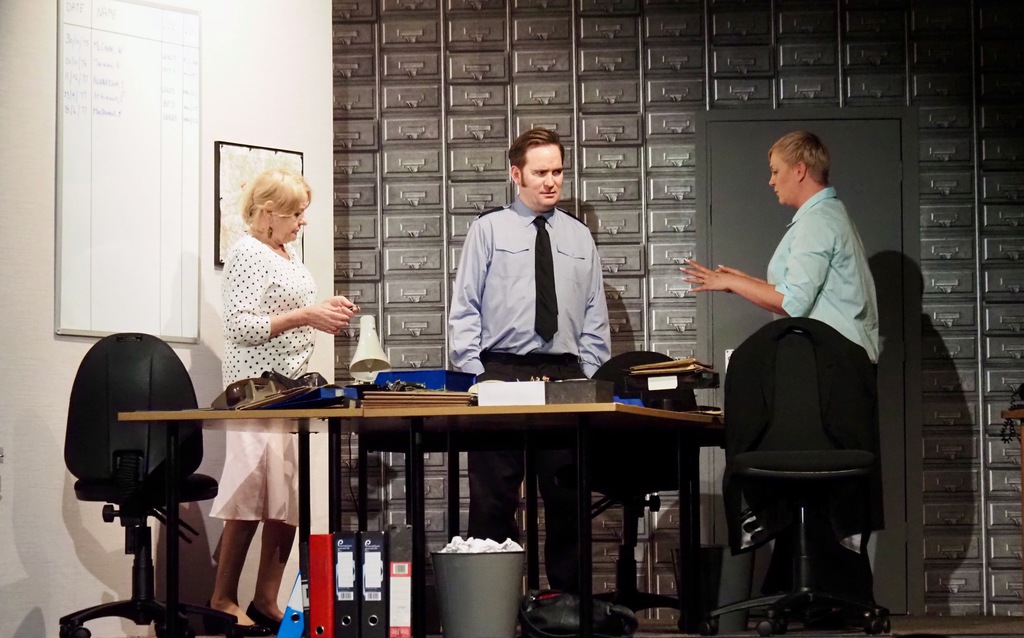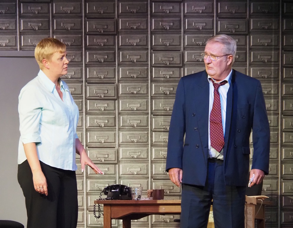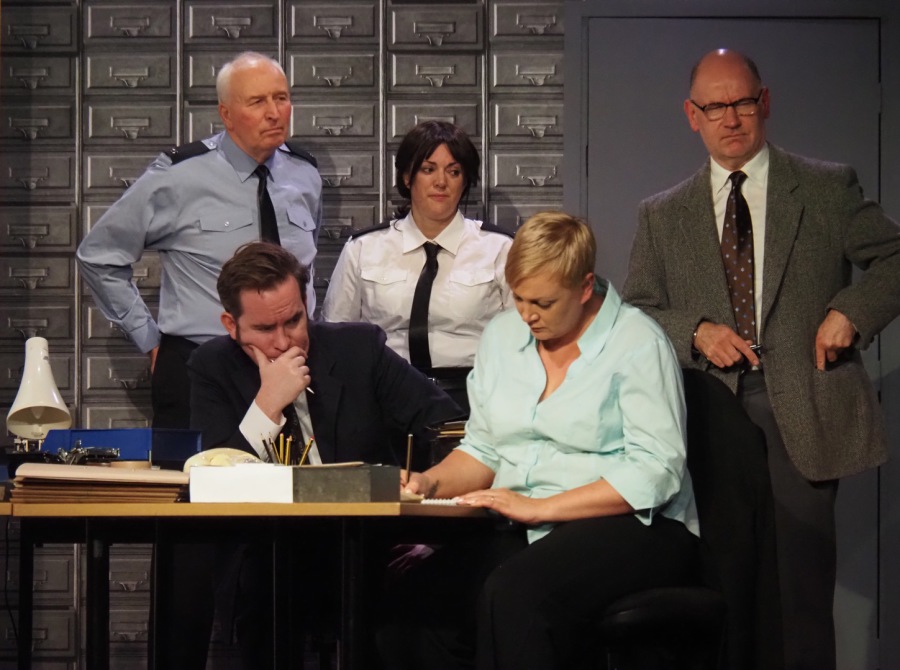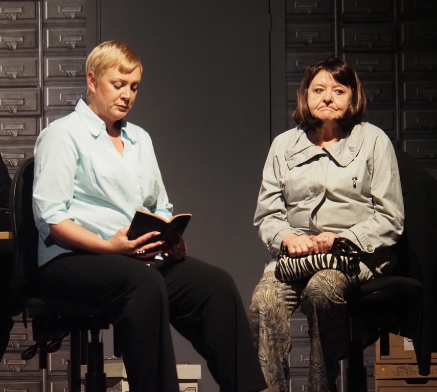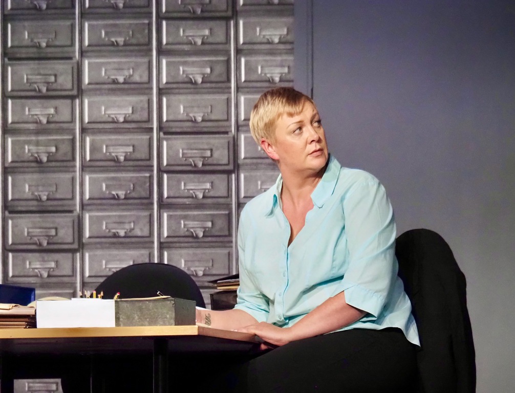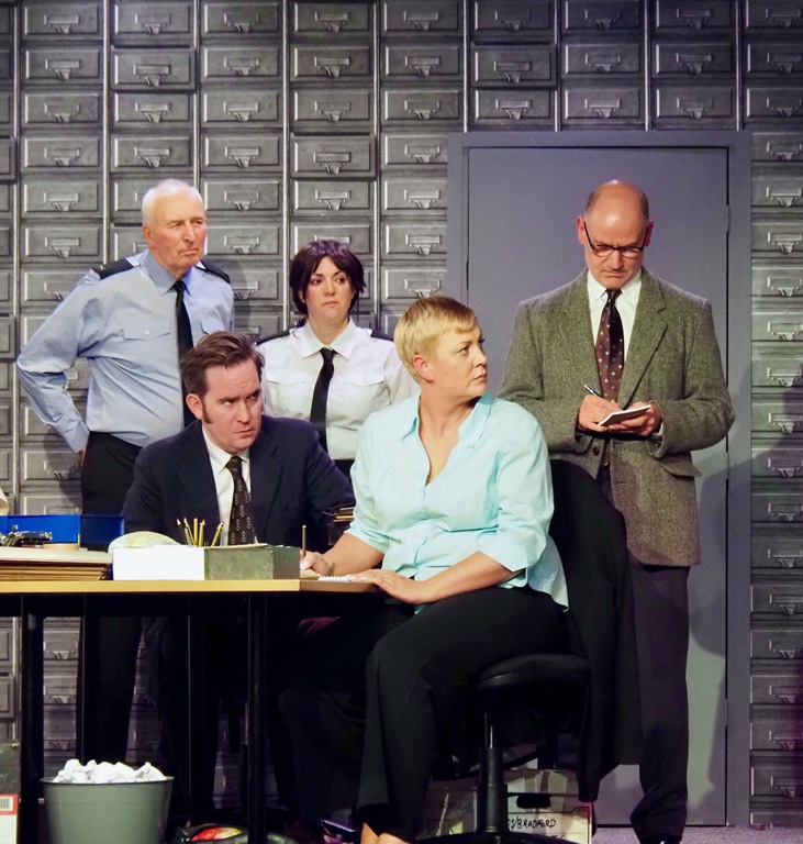 As the play evolved, we heard the so-called “Ripper Tapes”, still guaranteed to shock nearly fifty years on. We heard the letters supposedly sent by the Ripper, red herrings which delayed the investigation greatly, and all the time we felt the frustration of Megan Winterburn and Andy Laptew, as they could see a different side to it, which was brushed aside by the senior officers. And all the time the boxes of files piled up, threatening to take over the office. There was quite a bit of humour too, which was appreciated by the audience, as the laughter rang out loud several times during the play.