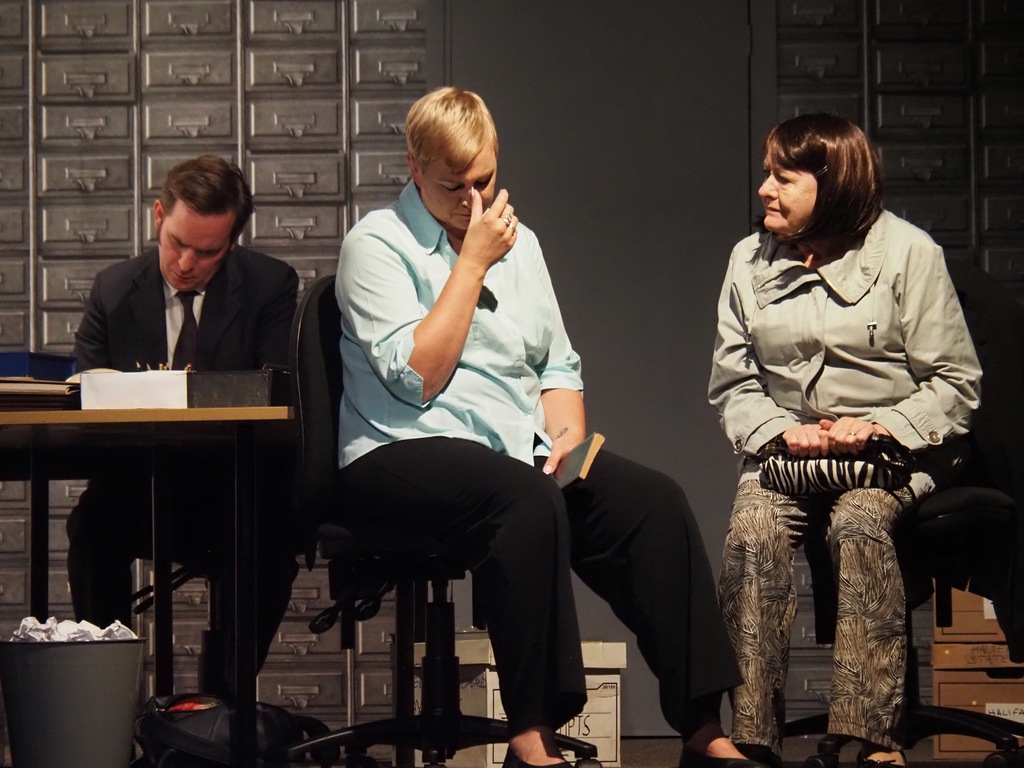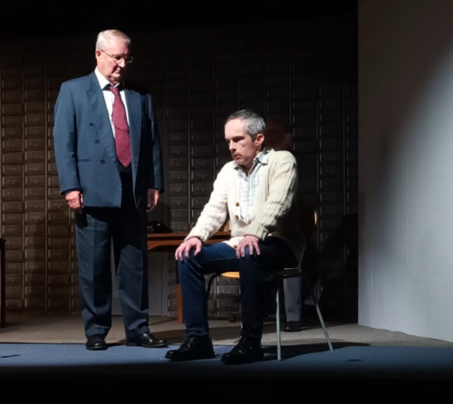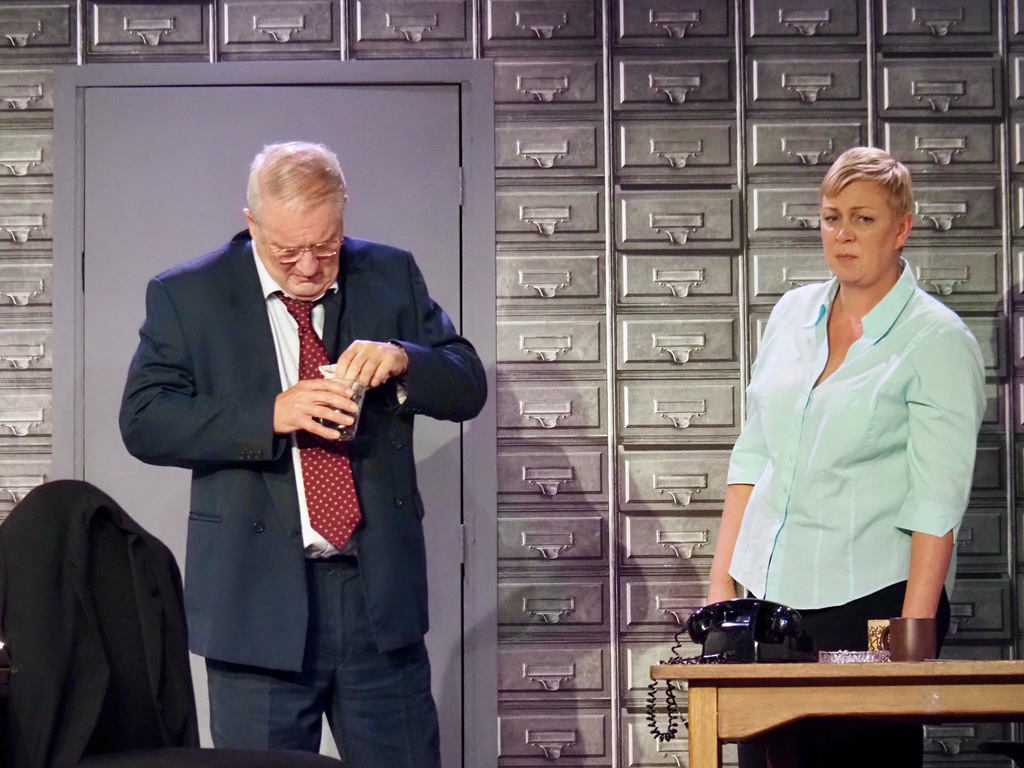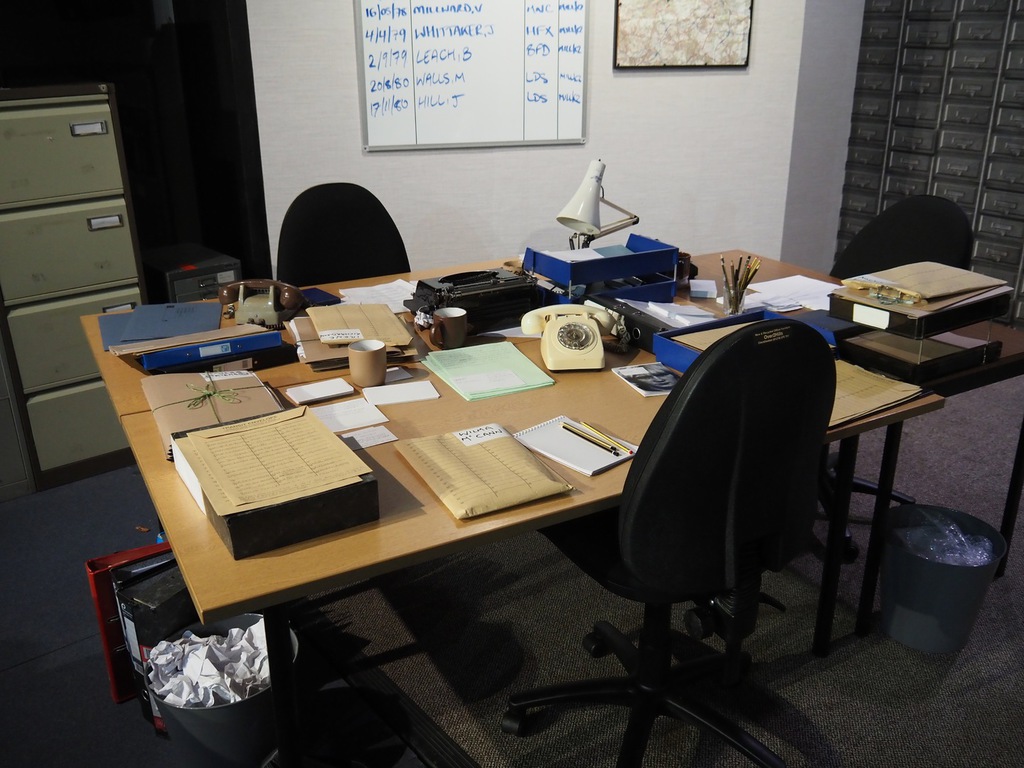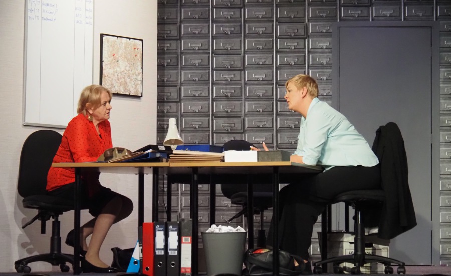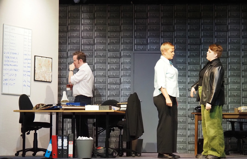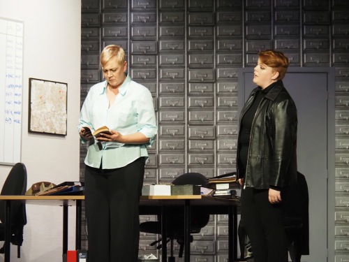 As the play evolved, we heard the so-called “Ripper Tapes”, still guaranteed to shock nearly fifty years on. We heard the letters supposedly sent by the Ripper, red herrings which delayed the investigation greatly, and all the time we felt the frustration of Megan Winterburn and Andy Laptew, as they could see a different side to it, which was brushed aside by the senior officers. And all the time the boxes of files piled up, threatening to take over the office. There was quite a bit of humour too, which was appreciated by the audience, as the laughter rang out loud several times during the play.