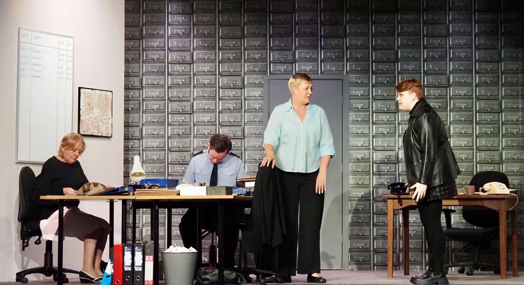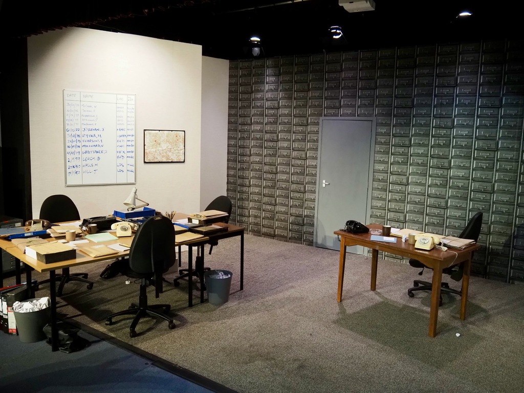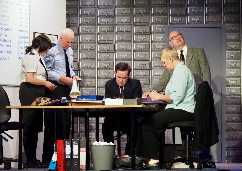 There were urban myths flying around of people giving lifts to old ladies who were found to have hairy hands and a hammer in their handbag, and others, more plausible, of being spoken to by a man who sent cold shivers down their spine. But all the time, the police had mounted a huge investigation, yet they seemed to be constantly barking up the wrong tree. This play was centred round the Incident Room at the now demolished Millgarth Police station in central Leeds. The frustrations of those involved in the investigation, were played wonderfully by the whole cast, displaying the attitude of men to women in the workplace, as when the head of Manchester CID swept in, and as he was introduced to Sgt Megan Winterburn, barked out his order for a cup of tea “with three sugars!”. She to her credit answered “The kettle’s over there!” That captured the feeling of that era, women made the tea, men solved the crimes.
